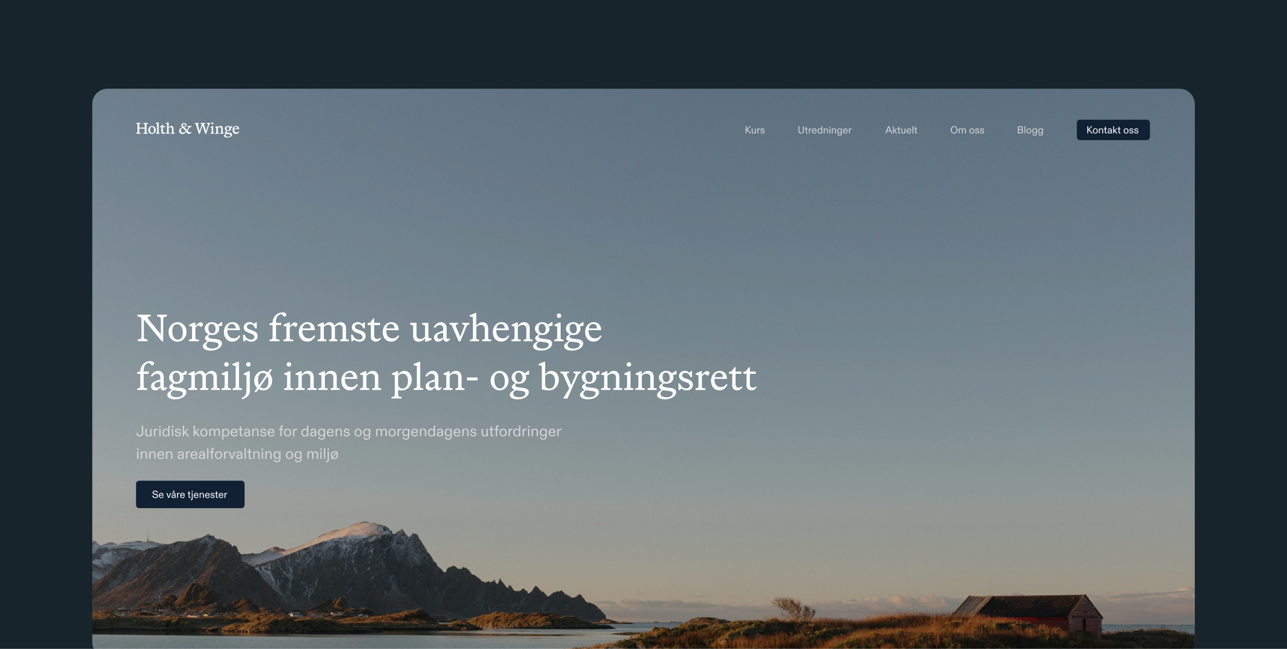 Holth & Winge er Norges fremste uavhengige fagmiljø innen plan- og bygningsrett. De holder kurs og foredrag om hvordan naturen i Norge skal forvaltes, hvorfor loven i flere tilfeller brytes og hvilke konsekvenser dette har juridisk, for mennesker, for natur og for det norske biomangfoldet. Vi har hjulpet H&W med digital utvikling og prototyping av nye tjenester.