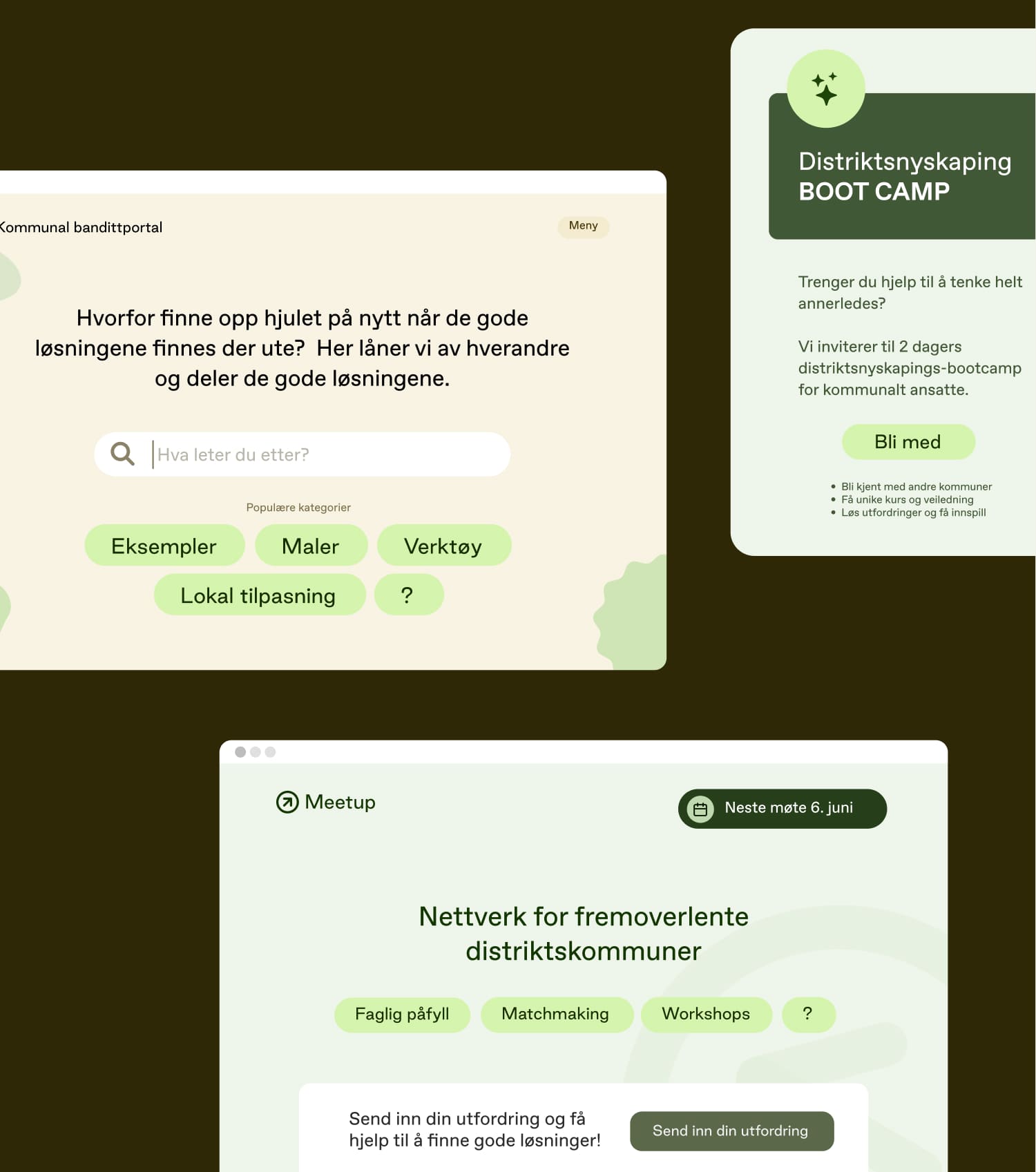 Gjennom to feltarbeid og dybdeintervjuer med åtte distriktskommuner – fra Lebesby i nord til Utsira i sør – kom vi tett på hverdagen til kommunalt ansatte. Vi testet hypoteser, skisserte prototyper, og jobbet iterativt med innsikt og forslag.